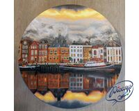 City in the Flames of Sunset 40x40 cm on a round frame