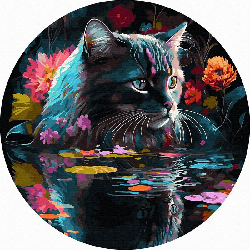 Mirror of Cat Dreams 40x40 cm on a round frame paint by numbers